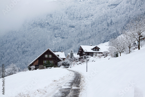 house in winter forest