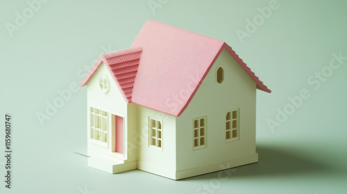 three-dimensional, box, house, bow, present, gift, isolated, pink, sale, residential, home, roof, package, ribbon, loan, dream, buy, surprise, white