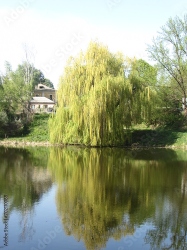 water, lake, house, river, landscape, nature, tree, duck pond, building, green, park, sky, summer, rural, architecture, travel, tree, grass, wood, bungalow, castle, countryside, home, house