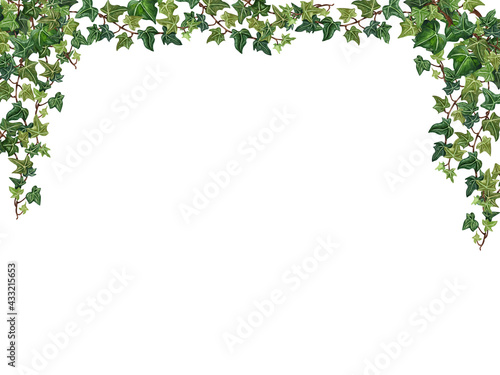 Houseplant leaves of devil's ivy, bush with hanging branches isolated on white background,. Watecolor Floral border