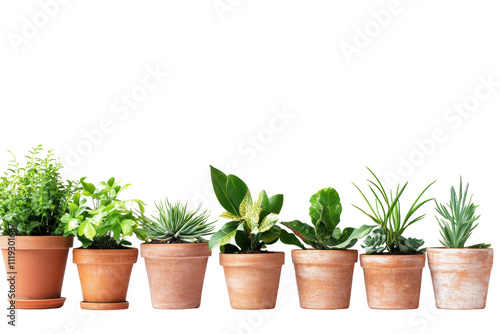 Houseplants in terracotta pots, creating earthy ambiance, perfect for traditional decor, isolated on transparent and white background.PNG image