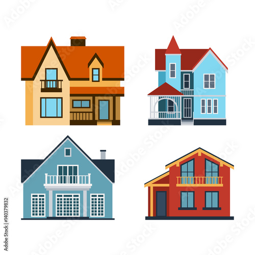 Houses front view vector illustration building architecture home construction estate residential property roof set apartment housing cottage