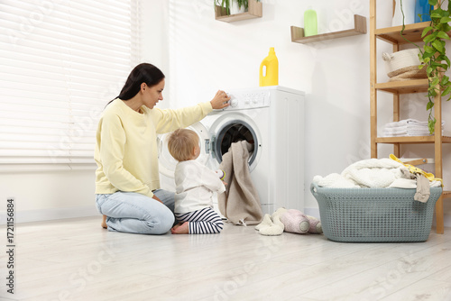 adult, apparel, baby, background, basket, bathroom, beautiful, boy, care, caucasian, children, chore, clean, clothes, cotton, cute, doing, domestic, fabric, family, female, fresh, full-length, garment, girl, home, house, household, housekeeping, homemaker, housework, hygiene, indoor, infant, children, laundry, lifestyle, little, machine, mother, eltern, people, routine, textile, toddler, together, laundered, washer, washing