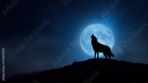 howling. A wolf howling under a starry night sky, embodying wild and dramatic nature. wildlife magazines, conservation campaigns, designed for wildlife conservation campaigns.