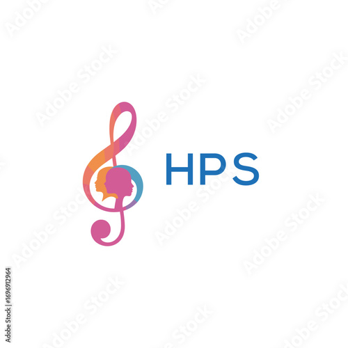 HPS “Colorful music logo with human faces and treble clef design” HPS Later Logo, “Creative music academy logo with silhouette heads and notes”