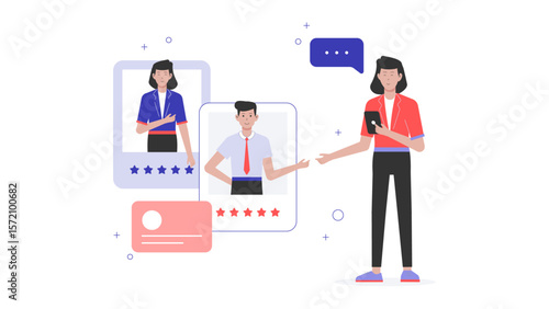 HR Group Reviewing Employee Satisfaction Survey, flat vector illustration