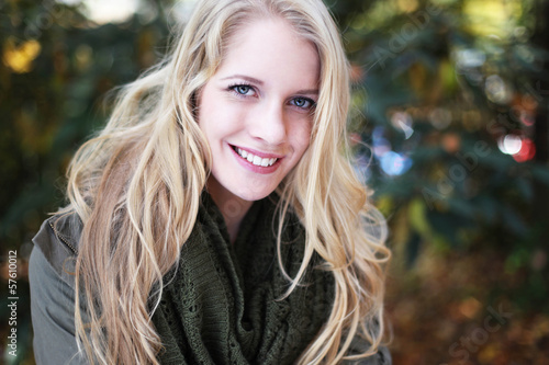 woman, lady, girl, young, pretty, attractive, pretty, sexy, young, beauty, fashionable, slim, autumn, season, season, leaf, yellow, gold, walk, recreation, vacation, weekend, recover, relax, fun, fun, coat, parker, jean, park, outside, tree, green, sun, bright, daytime, cool, cold, bandana, luck, happy, park bench, bench, blond, rest