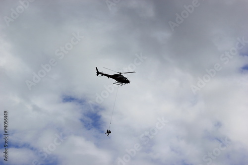 Hubschrauber rettet Menschen mittels Seilbergung (Taubergung)