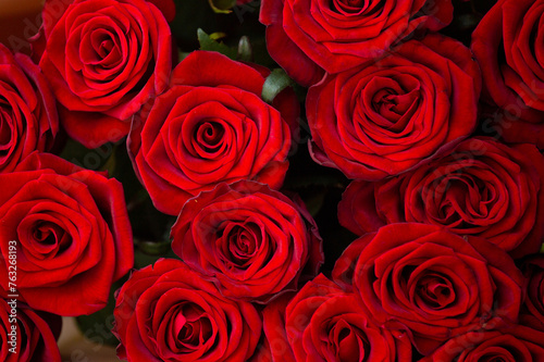 Huge bouquet of beautiful red roses as background, floral background.