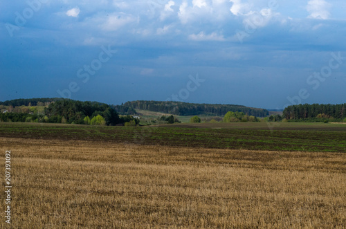 Huge storm clouds approach the forest. Big clouds of rain over the forest