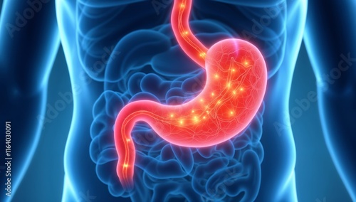 Human Digestive System Highlighting Stomach in Medical 3D Illustration