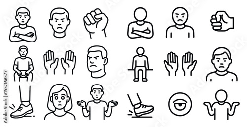 emotion, expression, feeling, gesture, body language, linear, outline, vector, icon, set, art, design, communication, emotion, style, illustration, symbolism, concept, minimalist, pictogram, mood, psychology, character, visual, simplistic, creative