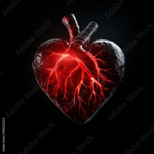 Human heart with glowing red vessels
