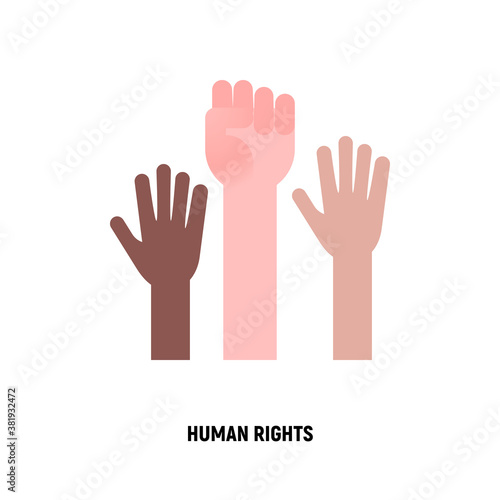 Human rights flat icon. Raised hands. Tolerance, protest, anti-racism movement. Vector illustration.
