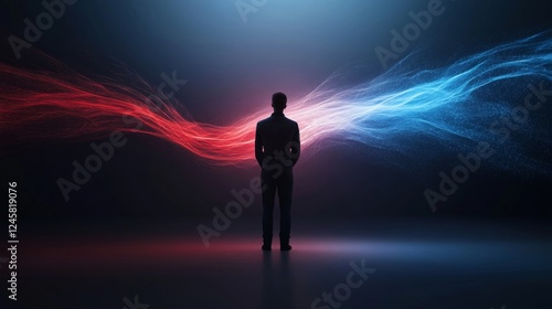 human, silhouette, standing, storm, glowing, light, contrast, background, figure, darkness, energy, dynamic, abstract, emotion, isolation, mystery, movement, visual, artistic, expression, solitude, vibrant, digital, technology, creativity, imagination, person, shape, atmospheric, surreal, illumination, fantasy, dream, inspiration, art, design, scene, concept, exploration, surrealism, aesthetic, phenomena, style, mood, optical, depiction