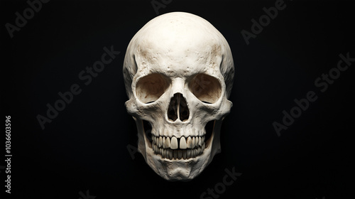 Human skull, isolated, front view with intricate bone details