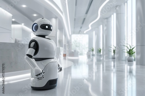 robot, android, ai, assistance, automation, technology, modern, office, indoor, ambient, lighting, clean, background, intelligence, robotic, future, innovation, tech, science, assistant, service, corporate, business, work, interaction, smart, artificial, cybernetic, contemporary, environment, white, design, electronic, engineering, futuristic, interior, machine, mechanical, productivity, reception, sleek, technically