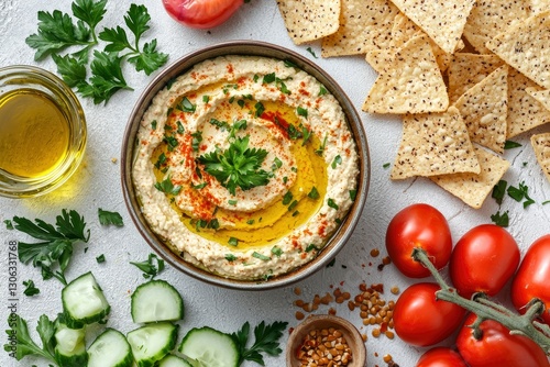 hummus, vegetable, protein, vegetarian, vegan, snack, cracker, platter, dip, healthy, food, mediterranean, cookery, creamy, smooth, widener, chickpea, fresh, alimentary, organic, white, background, minimal, epicure, delicious, homemade, traditional, diet, colourful, topview, texture, dipping, seasoning, herb, olive oil, garlic, lemon, parsley, elegant, stylish, trendy, aesthetic, rustic, natural, light