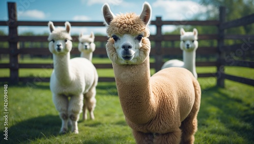 Humorous White Alpacas on UK Farm in Meadow