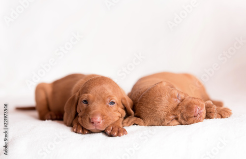dog, animal, vizsla, red, children, puppy, purebred, bred, pedigreed, nobody, friendly, domestic, pet, young, small, white, background, isolated, youth, portrait, adorable, playful, innocent, relax, photo, studio, friendship, lovely, sweet, beauty, love, mammal, funny, hunter, hungarian, cute, lie, face, closeup, head, 2