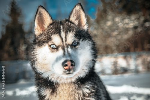 dog, husky, animal, siberian, pet, snow, portrait, winter, canino, fur, white, eye, breed, malamute, blue, cute, wolf, puppy, beautiful, mammal, siberian husky, alaskan, black, head, sled