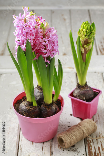 accessory, background, beautiful, bloom, blooming, blossom, botany, bud, bulb, care, conservatory, cultivated, decor, decoration, detail, floral, flower, flowerpot, fresh, garden, gardening, green, grow, growth, head, hobby, holland, hyacinth, natural, nature, plant, pot, protect, rough, rustic, spring, springtime, string, symbol, table, trade, white, wood