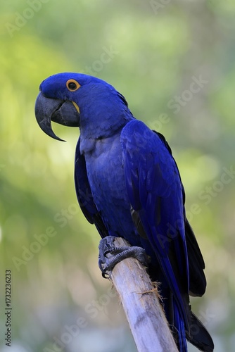Hyacinth Macaw (Anodorhynchus hyacinthinus), adult on wait, Pantanal, Brazil, South America