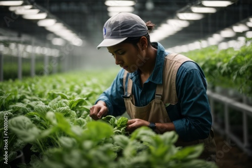 Hydroponic farm worker demonstrating modern farming practices