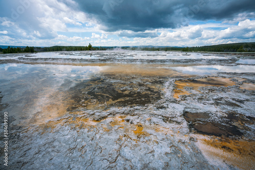 hydrothermal area of great fountain geyser in yellowstone national park, wyoming in the usa