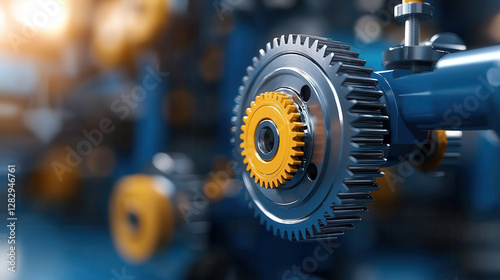 engineering, concept, magnified, rotating, cogwheel, gear, mechanism, precision, innovation, mechanical, design, technology, machinery, industrial, metal, blue, yellow, closeup, detailed, component, structure, technical, equipment, manufacturing, process, system, part, cog, wheel, rotation, machine