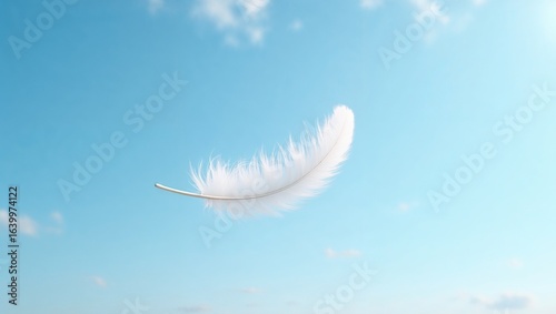 Hyper Realistic White Feather Floating in a Calm Blue Sky