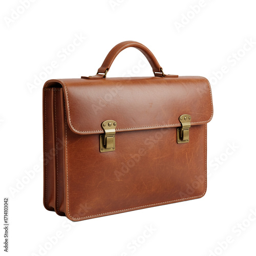 briefcase, leather, brown, isolated, cut-out, object, single object, bag, vintage, retro, classic, elegant, professional, executive, luxury, fashion, accessory, design element, blank, empty, no people, studio shot, high-quality, photorealistic, realistic, still life, genuine leather, texture, material, grain, office, work, corporate, education, travel, journey, style, e-business