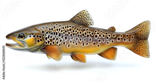 Hyper-realistic Brown Trout Fish Illustration Isolated on White Background