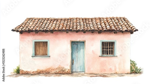 Hyperrealistic Watercolor Illustration of a Pastel Colored House with Traditional Tile Roof