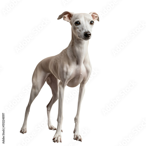 Hyper-realistic Whippet with lean build and soft fur, isolated on transparent background. AR 1:1.