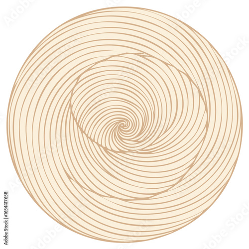 Hypnotic spiral lines forming an abstract circular design in warm beige tones