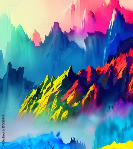 colourful, mountain, watercolor, landscape, scenery, view, nature, sky, cloud, sun, light, shadow, texture, brushstroke, detail, vibrant, serene, majestic, stunning, idylli, picturesque, sublime, beautiful, lovely, charming, delightful, sweet, nice, pleasant, cool, warm, hot, cold, wet, dry, hard, soft, smooth, rough, jagged, pointy, infused, high, low, long, short, wide, narrow, big