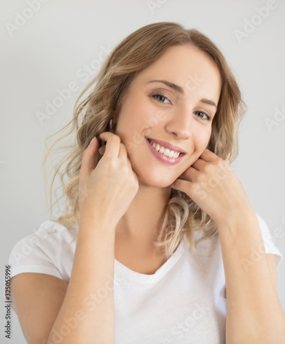 closeup, adult, beautiful woman, beauty, bodycare, body part, care, clean, confidence, copy space, face, female, freshness, head shot, healthy lifestyle, indoor, inside, lifestyle, long hair, natural, natural beauty, nature, one person, part of, people, perfection, portrait, pure, purity, skin, skincare, studio, touch, touching, well-being, woman, young adult, smiling, happy, cheerful