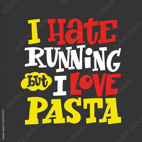 I Hate Running But I Love Pasta hand drawn vector lettering. Motivating handwritten quote, slogan.