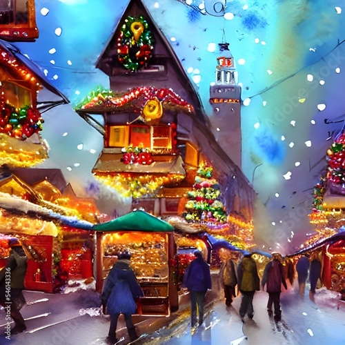 christmas, market, evening, night, light, festive, merry, bright, sunny, happy, joyful, jolly, fun, family, friends, love, snow, cold, ice, frost, breath, foulard, hat, coat, mug, hot, drink, food, music, dance, crowd, people, energy, excitement, children, laughter, present, christmas tree, star, ornament, gift, giving, receiving, holiday, tradition, religious, spiritual, cultural, commercial