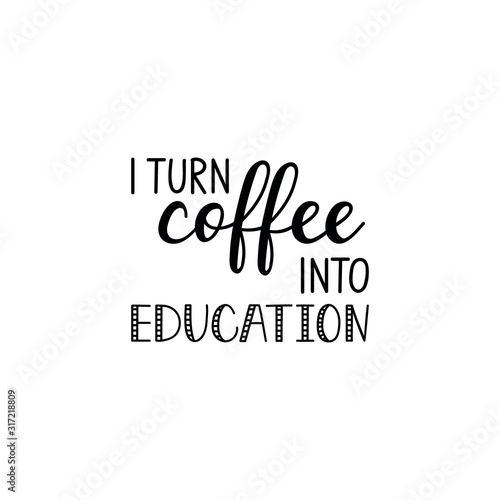 I turn coffee into education. Lettering. Ink illustration. Modern brush calligraphy Isolated on white background. t-shirt design