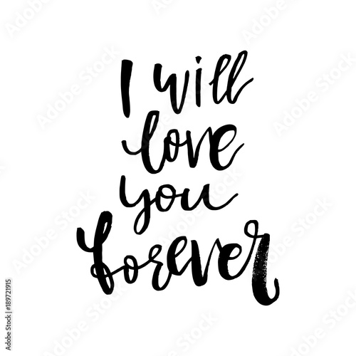 I Will Love You Forever - Happy Valentines day card with calligraphy text on white. Template for Greetings, Congratulations, Housewarming posters, Invitation, Photo overlay. Vector illustration