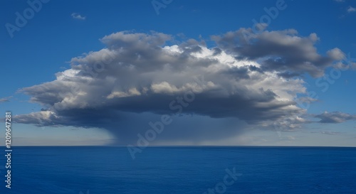 ia generated. White puffy clouds over the calm sea. storm clouds over the sea