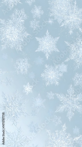 Ice Blue Backdrop with Detailed Snowflakes, Winter Holiday Season Background