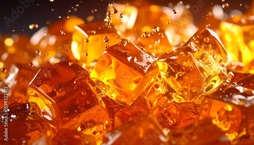 Ice Cubes Splashing: A refreshing visual, showing ice cubes in a close-up shot creating a refreshing and cool effect. It captures the essence of a crisp and invigorating experience.