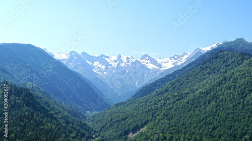 mountain, mountain, landscape, nature, sky, snow, view, forest, alps, summer, panorama, travel, blue, green, vale, cloud, peak, hill, rock, cloud, hiking, scenic, tree, alpine, caucasia, georgia