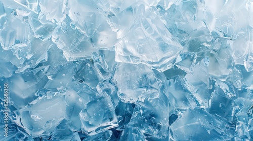 Ice texture cracks surface, abstract background winter ice transparent blue