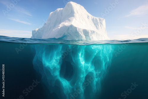 Iceberg Cross-Section Revealing Massive Submerged Structure Beneath Ocean Surface