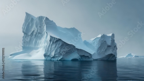 iceberg, glacial, majestic, cold, white, calm, sea, water, ice, glacé, fragile, huge, tranquil, nature, pristine, beauty, arctic, antarctic, ocean, floating, still, grey, light, fog, cloudless, serenity, huge, peak, jagged, mountain, flow, immensity, pale, sharp, blue, cool, silent, solitude, peaceful, stunning