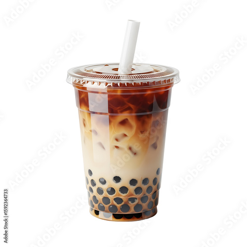 Iced Brown Sugar Bubble Tea in Plastic Cup.